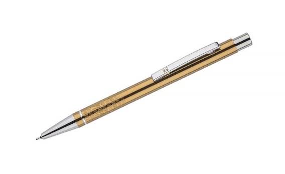 Długopis BONITO to elegancki metalowy długopis w metalicznych kolorach z chromowanymi wykończeniami. Wykonany z wysokiej jakości aluminium, korpus długopisu ozdobiony jest srebrnym ringiem oraz paskami o delikatnie chropowatej strukturze. Długopis wyposażony jest w wkład z tuszem półżelowym w kolorze czarnym o grubości 0,7 mm.