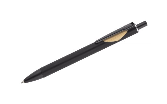 Długopis FRANK posiada przyjemną w dotyku powierzchnię soft touch. Bambusowy element wraz z metalicznym wykończeniem sprawiają, że długopis wygląda elegancko i nowocześnie.