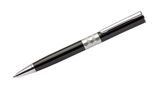 Nowoczesny długopis zaprojektowany zgodnie z najnowszymi trendami. Pośrodku metalowego korpusu znajduje się ozdobny pierścień wyglądem przypominający kryształ, dzięki czemu długopis zyskuje stylowy wygląd. Znakowanie możliwe na korpusie.