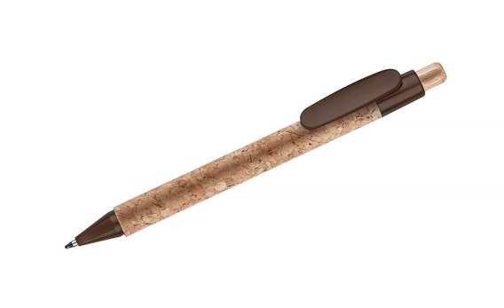 Długopis KORTE nawiązuje swoim wyglądem do idei recyclingu. Korpus został wykonany z naturalnego korka, a przycisk z drewna. Wykończenia z tworzywa sztucznego w żywych kolorach dodają mu uroku. Wkład w kolorze niebieskim.
