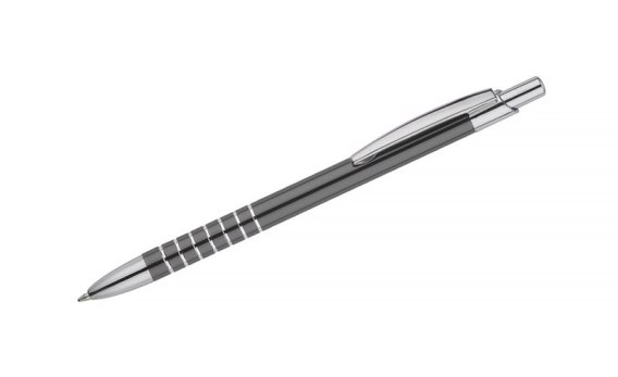 Prosty długopis wykonany z aluminium ozdobiony szerokimi ringami. Logo wygrawerujemy.
