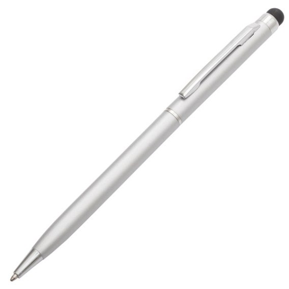 Długopis z końcówką przystosowaną do ekranów dotykowych. Korpus wykonany z aluminium, skuwka z metalu. Wkład w kolorze niebieskim. Posiada obrotowy mechanizm włączania.