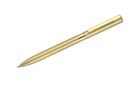 Długopis GELLE to elegancja i wygoda pisania w jednym. Długopis wykonany jest z metalu z wykończeniami chromowanymi lub złoconymi i posiada mechanizm typu twist. Żelowy wkład o grubości 0,5 mm w kolorze niebieskim.