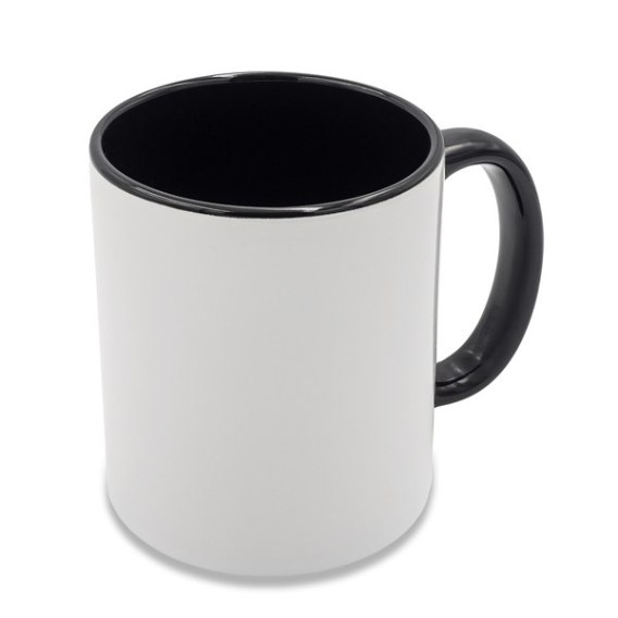 Kubek ceramiczny o pojemności 330 ml, przygotowany pod nadruk sublimacyjny, z kolorowym uchwytem i wnętrzem.
