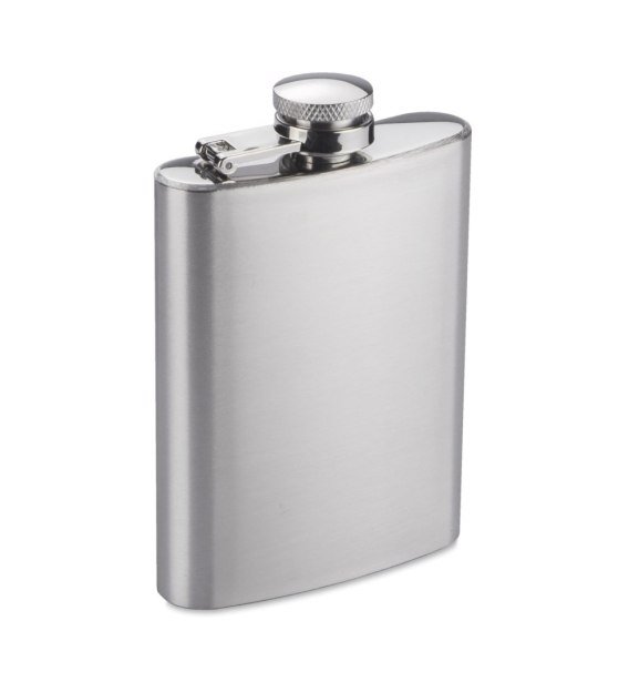 Piersiówka ze stali nierdzewnej o pojemności 110 ml, z bezpiecznym zamknięciem. Logo wykonujemy na powierzchni piersiówki poprzez grawerowanie laserem.