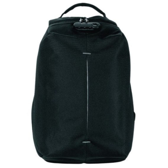 Plecak z zabezpieczeniami przed kradzieżą. Wejście do głównej części plecaka skierowane jest w stronę torby, co utrudnia dostęp komuś innemu. Plecak posiada również blokadę do zabezpieczenia zamków błyskawicznych, ukrytą kieszeń na kartę płatniczą lub klucze, wyściełane miejsce na laptopa 15'' i tablet 10 ''. W zestawie znajduje się również wyjście z kablem USB oraz pasek do przypięcia do walizki. Przednia powierzchnia jest wyposażona w odblaskowe akcesoria. Pojemność plecaka to 20,5 l.