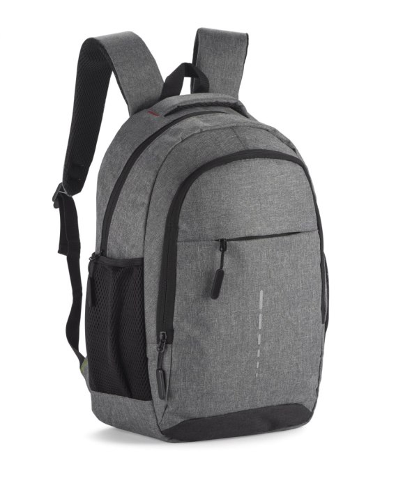 Plecak MARSH wykonany z mocnego poliestru 600D posiada pojemną główną komorę z wąską przegrodą zapinaną paskiem z rzepem. Zmieści ona 15-calowy laptop. Z przodu mniejsza komora zapinana na zamek oraz spora kieszeń również zasuwana zamkiem. Po obu stronach znajdują się siateczkowe kieszenie na napój. Usztywniane plecy i szelki wykończone miękką siateczką poprawią komfort użytkowania. U góry wygodna i szeroka rączka do chwycenia. Wewnątrz czarna podszewka.