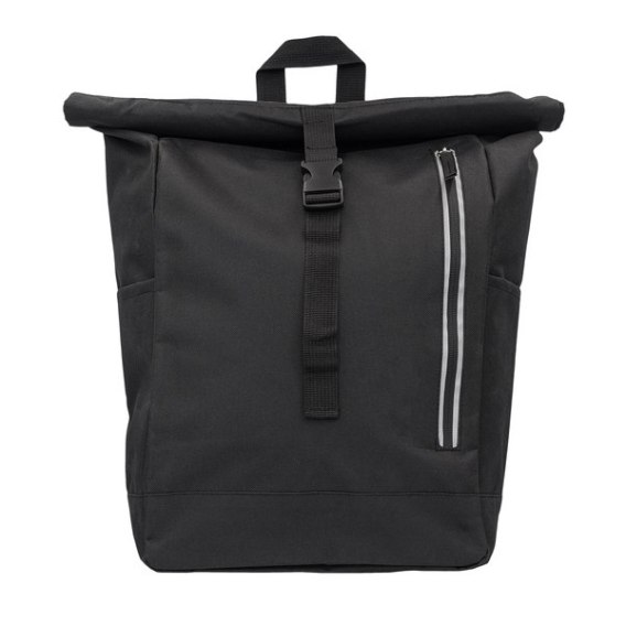 Jednokomorowy plecak ze zwijanym zamknięciem zapinanym na klamrę. Wyposażony w dwie kieszenie boczne i przednią kieszeń na suwak z odblaskową, widoczną w ciemności taśmą.