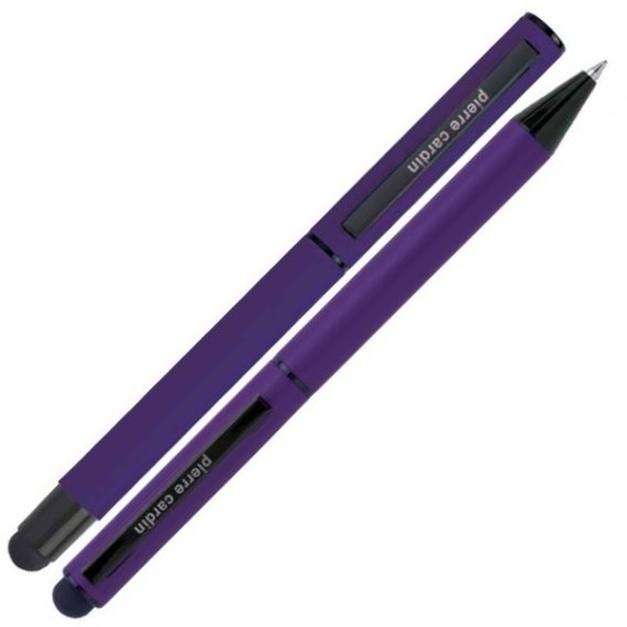 Zestaw piśmienniczy w modnych, intensywnych kolorach, składający się z długopisu oraz pióra kulkowego. Obydwa artykuły posiadają przyjemną w dotyku powierzchnię soft touch i czarne detale oraz funkcję touch pen. Długopis wyposażony w niebieski wkład (0,7 mm), a pióro kulkowe w niemiecki wkład Schneider piszący na niebiesko (0,5 mm). Całość zapakowana w eleganckie etui prezentowe z certyfikatem autentyczności Pierre Cardin.